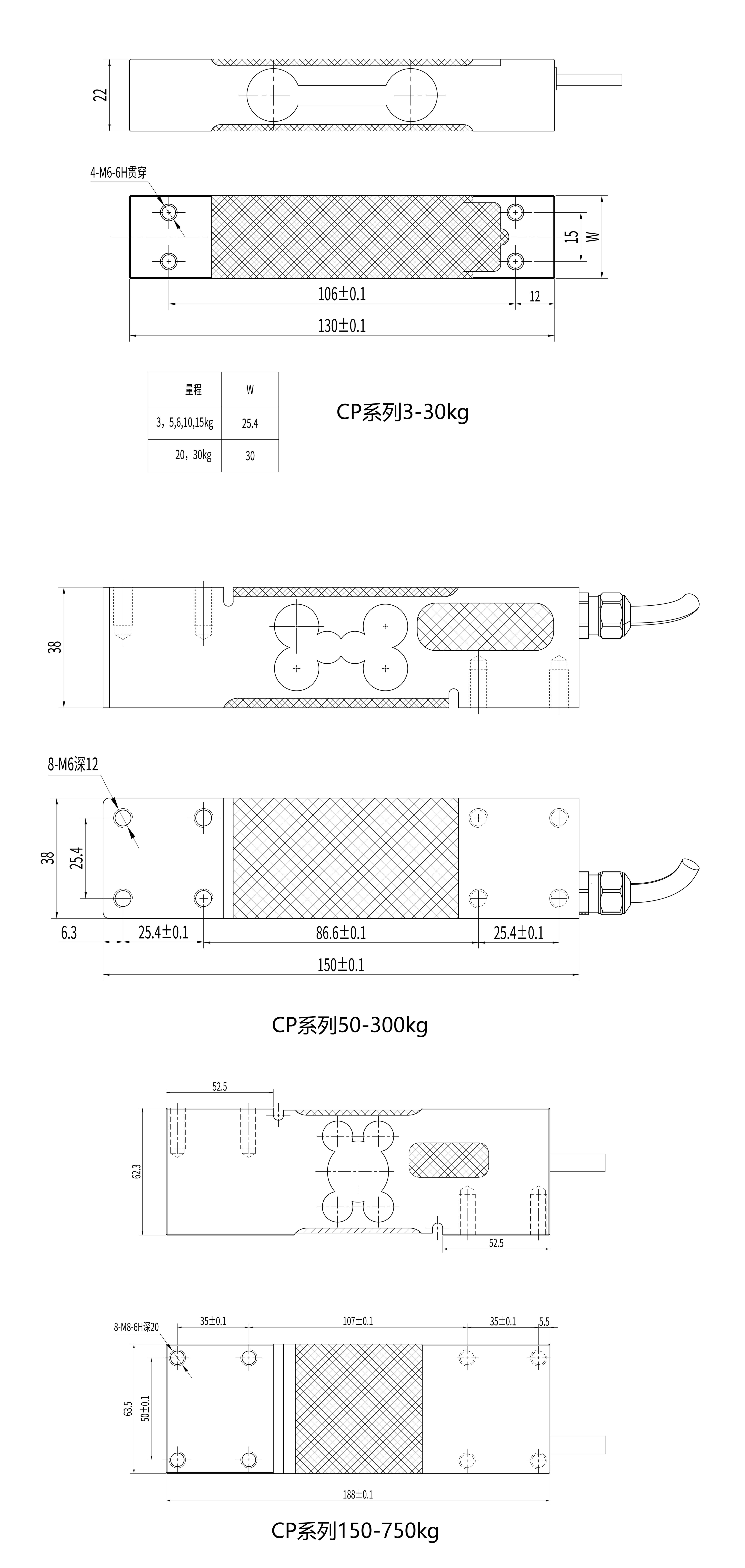 | 额定量程 | kg | 3/5/6/10/15 | 20/30/50/75/150/200/250/300/500/600/635/700/750 |