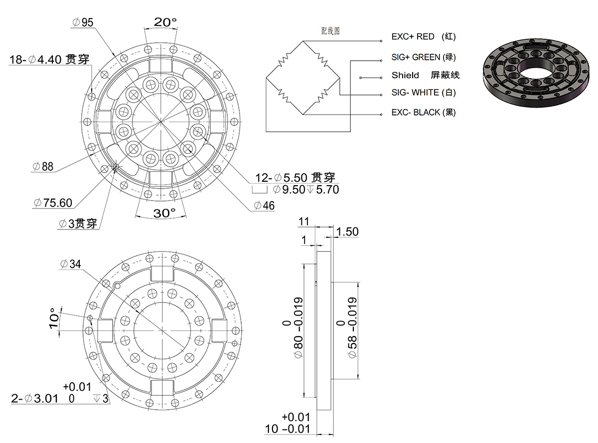 | 极限过载 | 300% F.S. |